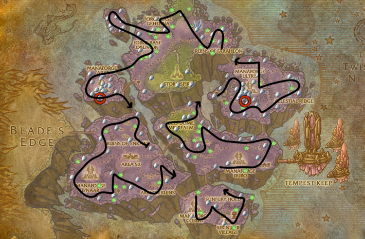 Shadowmoon Valley is also a great place to farm. There are two caves in the zone, but it's not worth going inside them. It takes too long to get to the nodes, and you can farm more ores just doing laps in the zone instead.