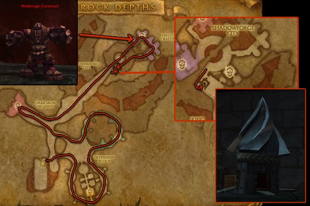 Once inside, follow the route below, but make sure to kill the Warbringer Construct in Hall of Crafting because they can drop Dark Iron Ore.