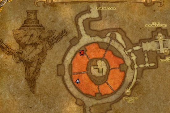 Fly down to the location marked with X on the map. To enter the instance, you have to talk to Lothos Riftwaker, and he will teleport you to Molten Core. If you have Chrome Time turned on, he won't let you enter with a low-level character, so make sure to turn it off.