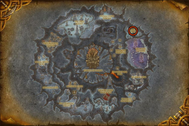 Bastion of Twilight is a level 30 raid instance located near the southwest border of Twilight Highlands. It's on the small island floating at the very top of a tower, you have to fly up to find the entrance (coordinates 34.2, 77.9, high up, link to the exact location). This is the best place to farm Embersilk. You can get around 300-400 clothes every hour. (tailors will get a lot more)