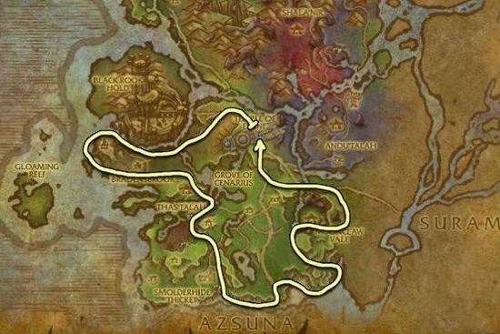 Similar to the previous place, but the basilisk are a bit more spread apart. There is always a few Felfire Basilisk up at the marked area, so you should have no downtime.