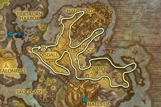 This route is not bad, but it can be really hard to farm here if you don't have Sky Golem mount or don't use Demonsteel Stirrups because there are a lot of parts where you can't avoid aggroing a bunch of mobs.