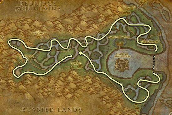 The herbs are a bit spread apart, so you have to sometimes move in a zigzag. There is probably more Sorrowmoss than Golden Sansam in this zone, but Swamp of Sorrows still have more Golden Sansam than other zones.