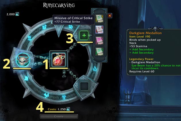 Legendary Base items (Rune Vessels) determine the slot you are making your armor for, and the item level of your armor.