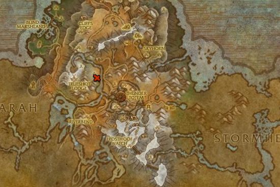 This one is also the great place to farm Big Gamy Ribs. Sated Hillstrider will constantly keep spawning around the marked area.
