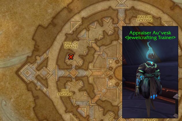 You can learn Shadowlands Jewelcrafting from Appraiser Au'vesk in Oribos in the Hall of Shapes. (Coordinates: 35.2, 41.8)