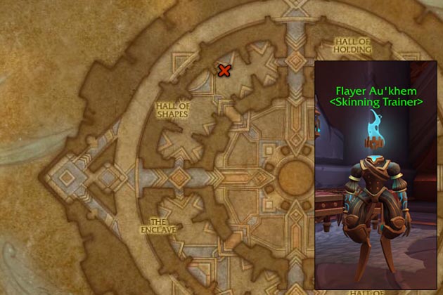 You can learn Shadowlands Skinning from Flayer Au'khem in Oribos at the Hall of Shapes. (Coordinates: 42.6, 27.6)