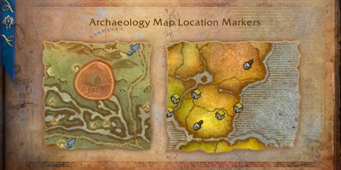 Once you learn Archaeology, you can see dig sites on your World Map. They look like little shovels.