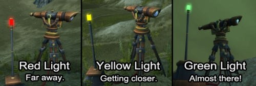 Check which direction the little telescope points to. Then, check its color. Red means you are far away, yellow means you are kinda close, and green means the artifact fragment is less than 30 yards away.
