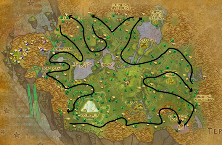 If you are lower level, you will probably reach Herbalism 375 just by picking herbs while questing, so I mostly made these routes for higher level players with flying mount who want to switch to Herbalism at level 70.