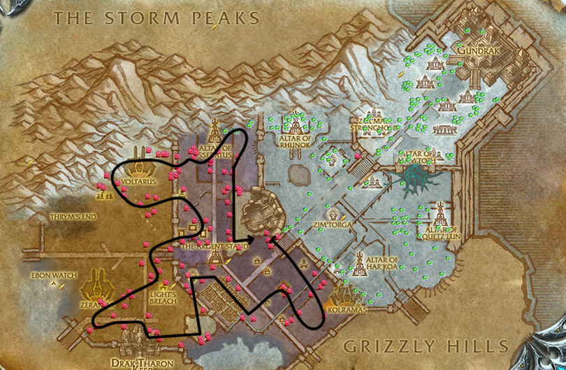 The route is easy to follow, and the herbs will start respawning by the time you do a full lap, but Grizzly Hills has a bit more Tiger Lily than Borean Tundra and Howling Fjord.
